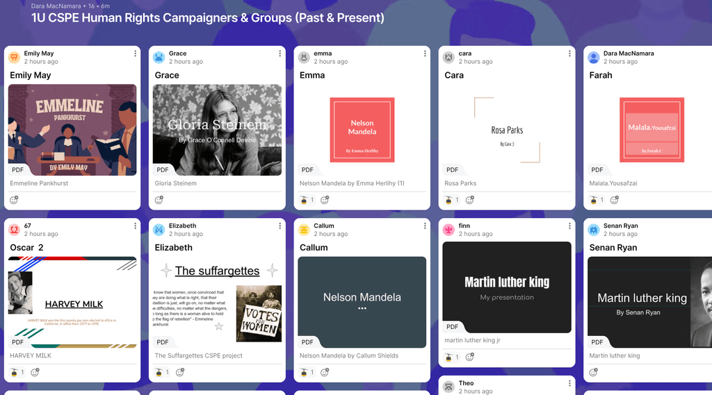 In CSPE class, the pupils of 1U had to choose a person or group that worked for human rights and research them.
