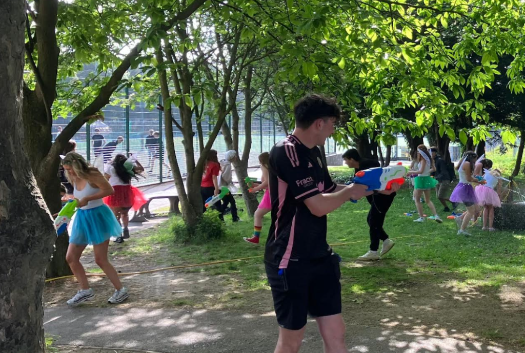 In advance of their Graduation tonight the Class of 2025 spent the morning in a fancy dress water fight.