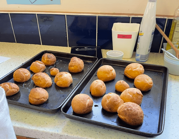 The group met in January to try their hands at choux pastry, and made delicious profiteroles filled with chantilly cream, and dipped in melted chocolate.