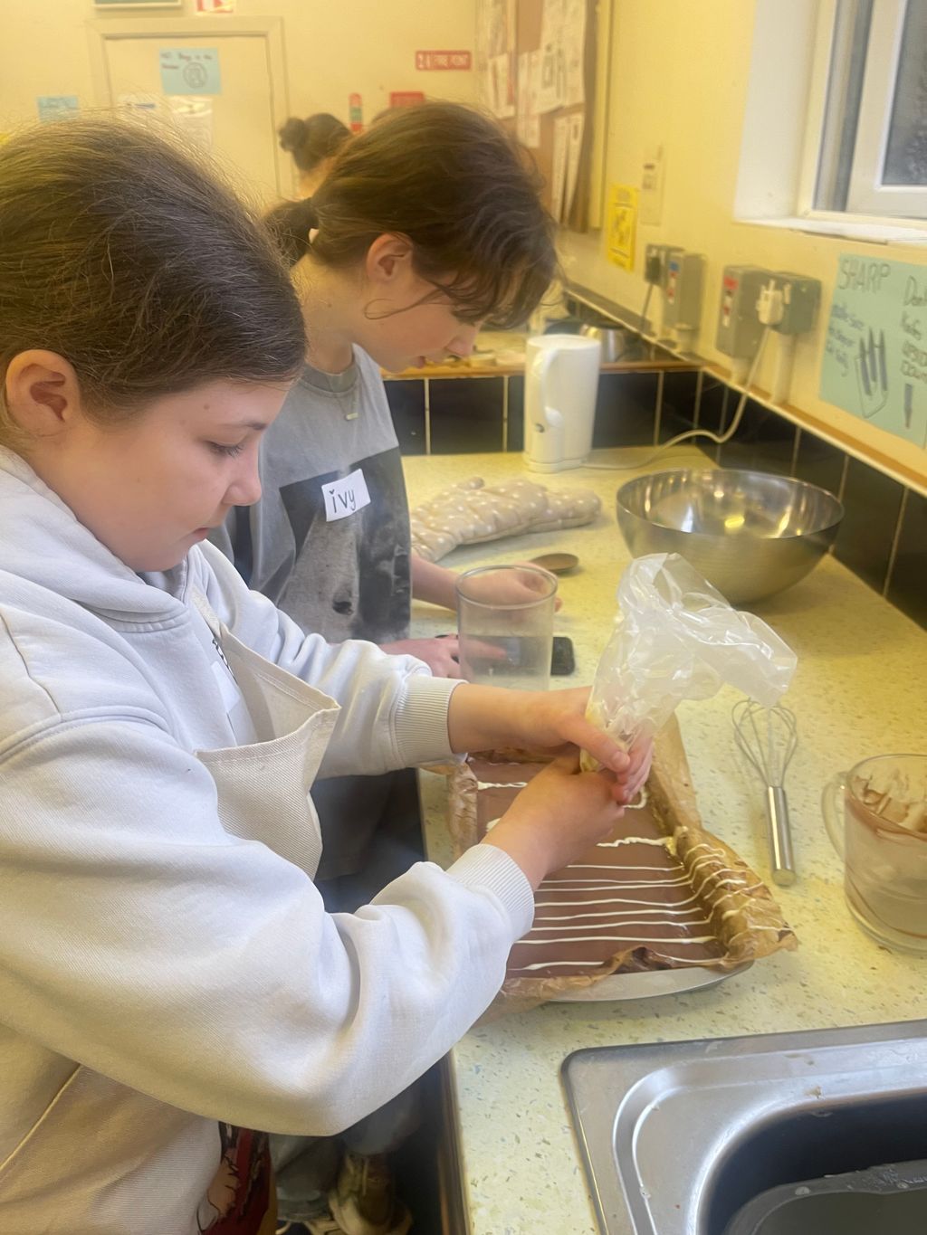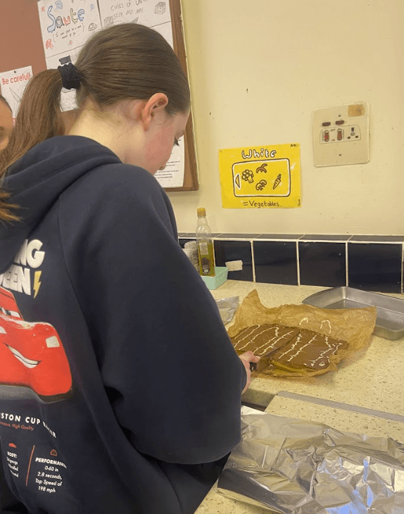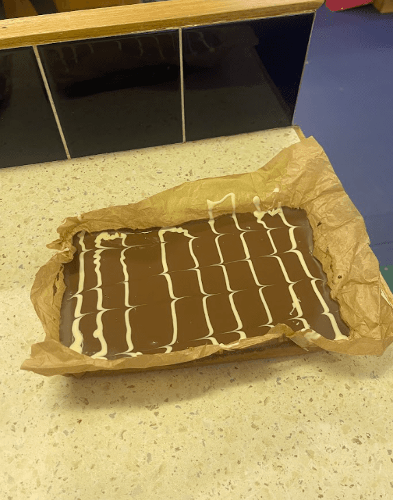 The cooking club, supported by the Mount Temple Arts Council, met yesterday and made delicious caramel slices.