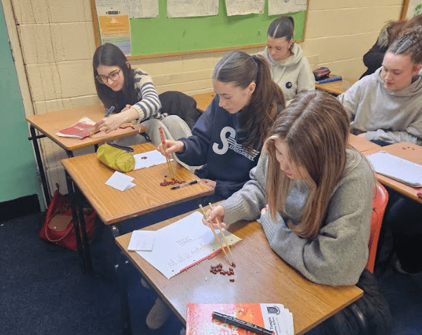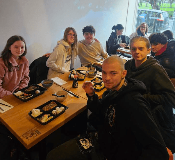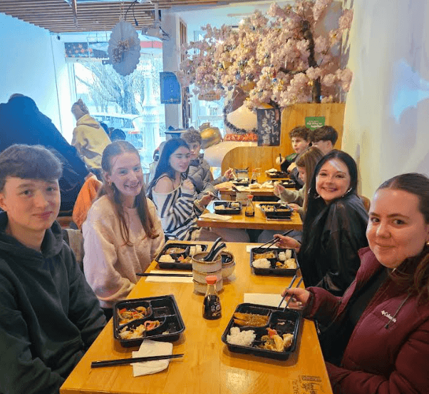 TY Japanese group learned about using chopsticks the class then went to the local Japanese restaurant to try Bento boxes in a local Japanese restaurant.