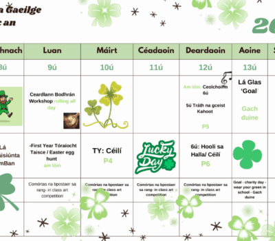 Seachtain na Gaeilge (Calendar of events in Mount Temple).