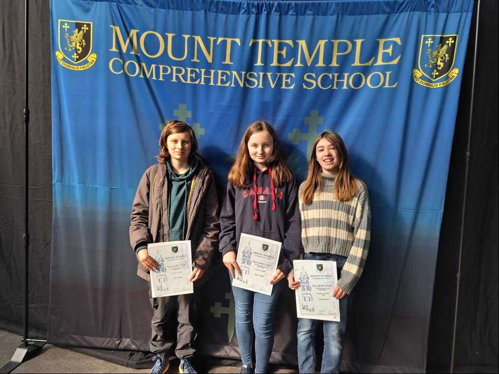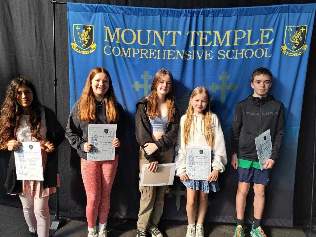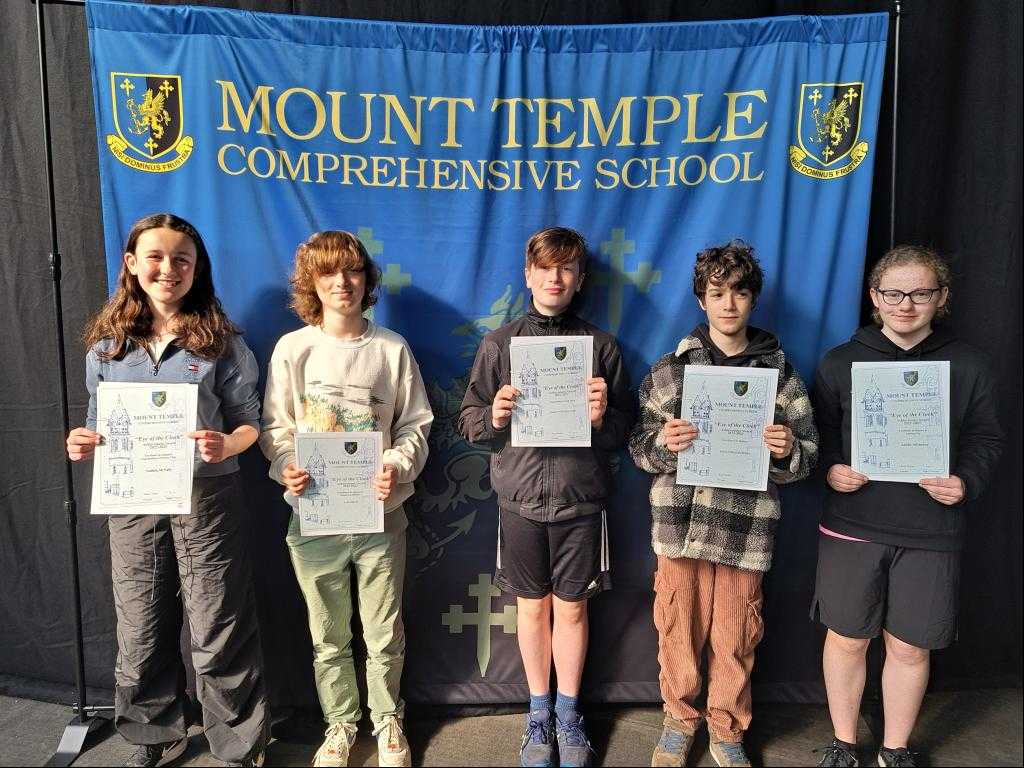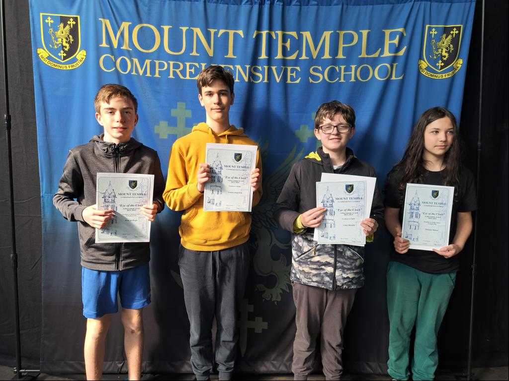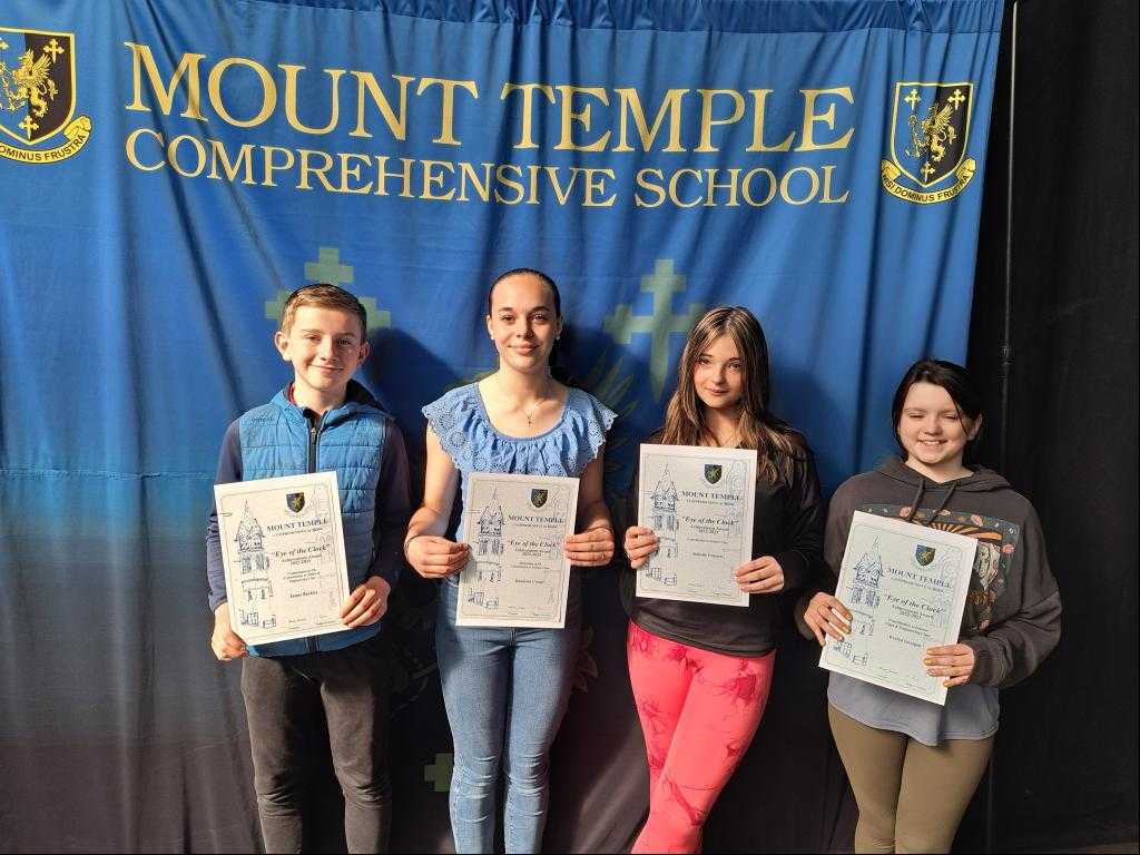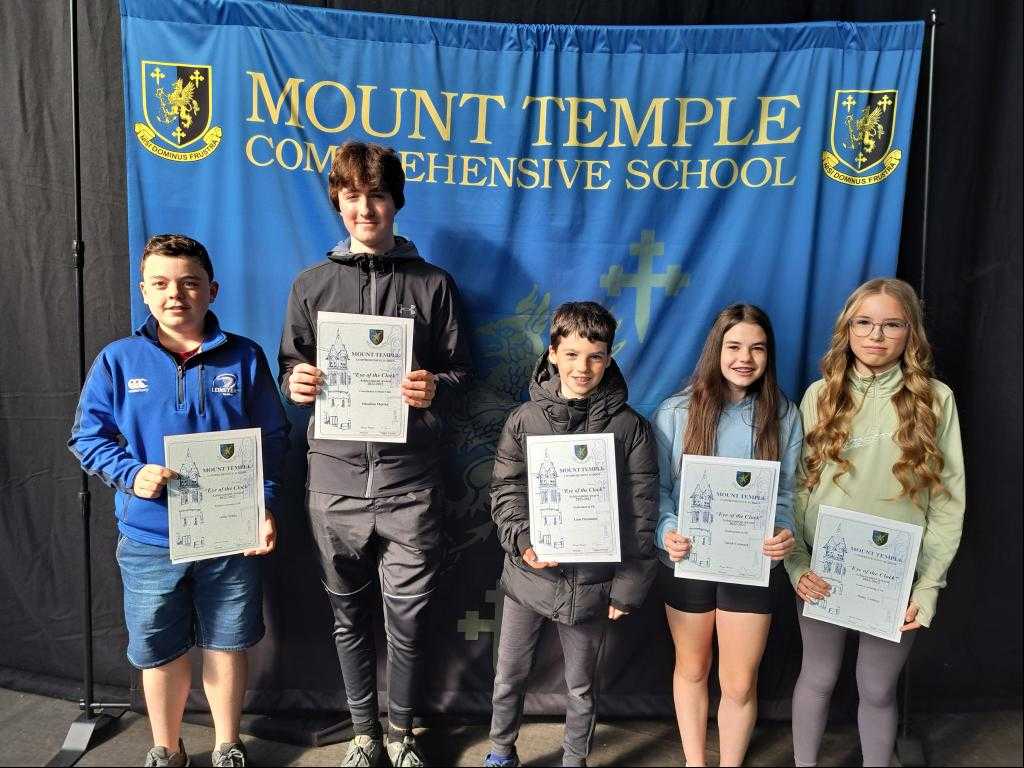 1st years receiving Eye of the Clock Awards at their final assembly.