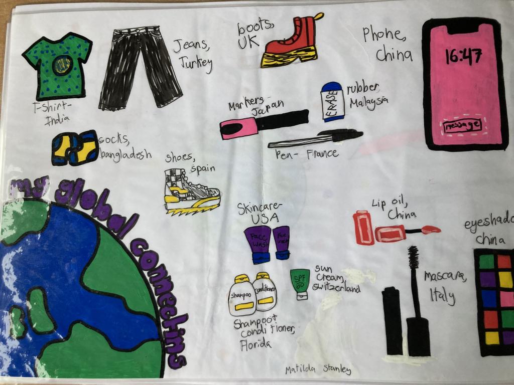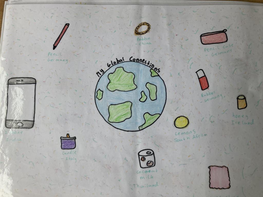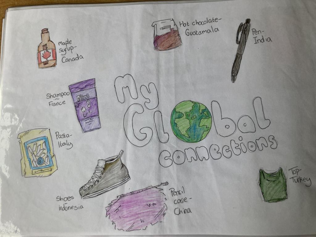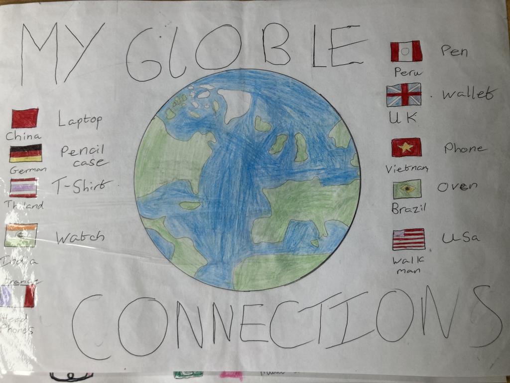 Pupils in 2B designed some wonderful posters to illustrate how connected we are to other countries through the products we consume. Check out a selection of their posters in the gallery below.