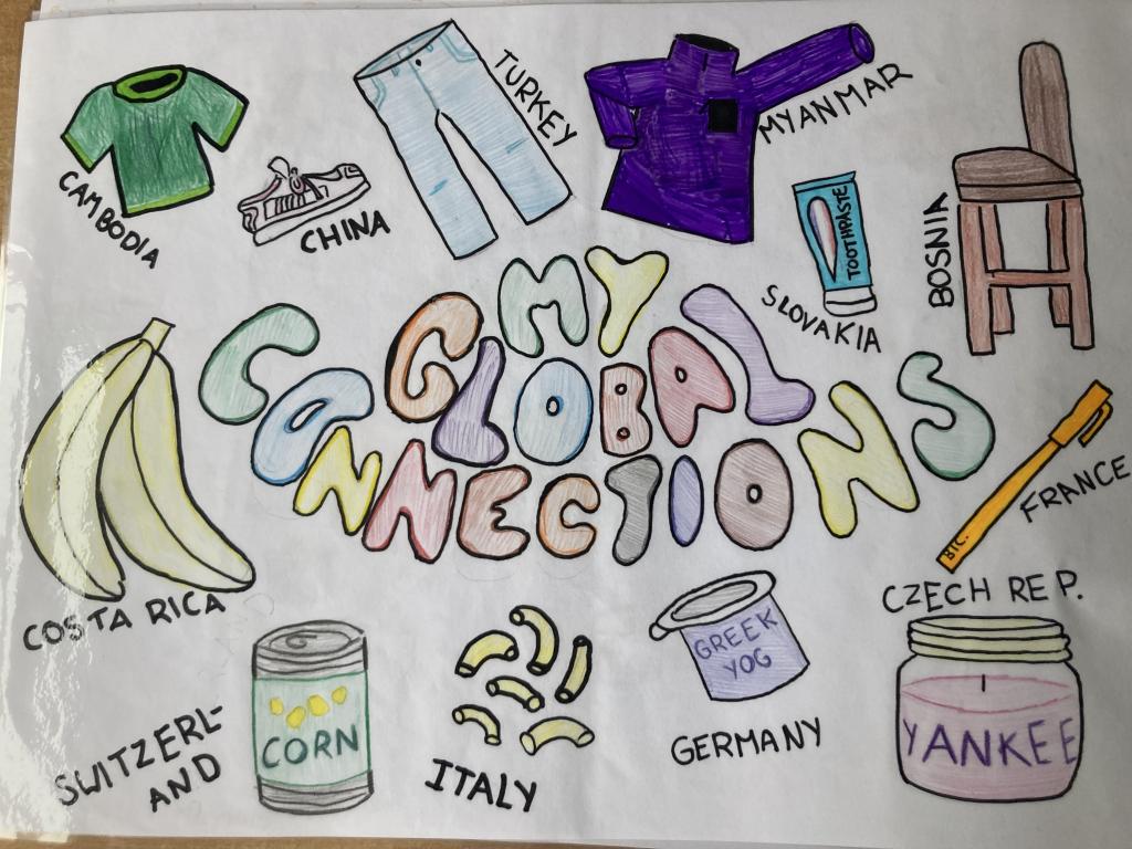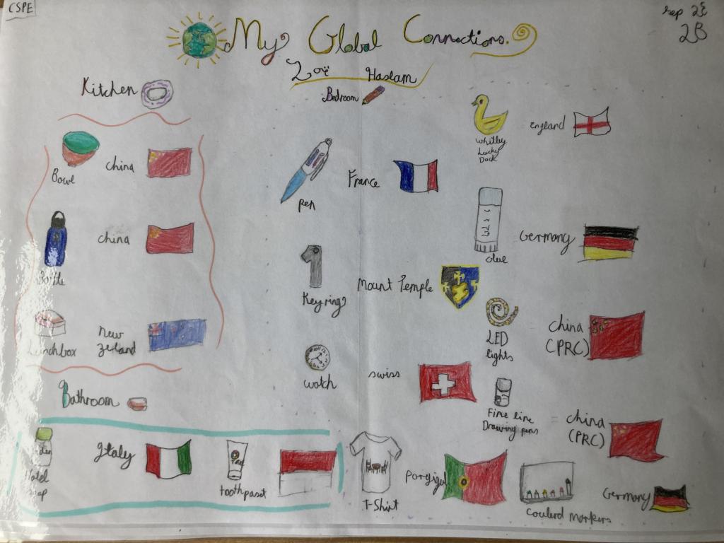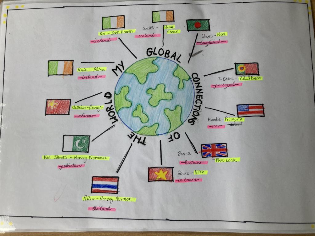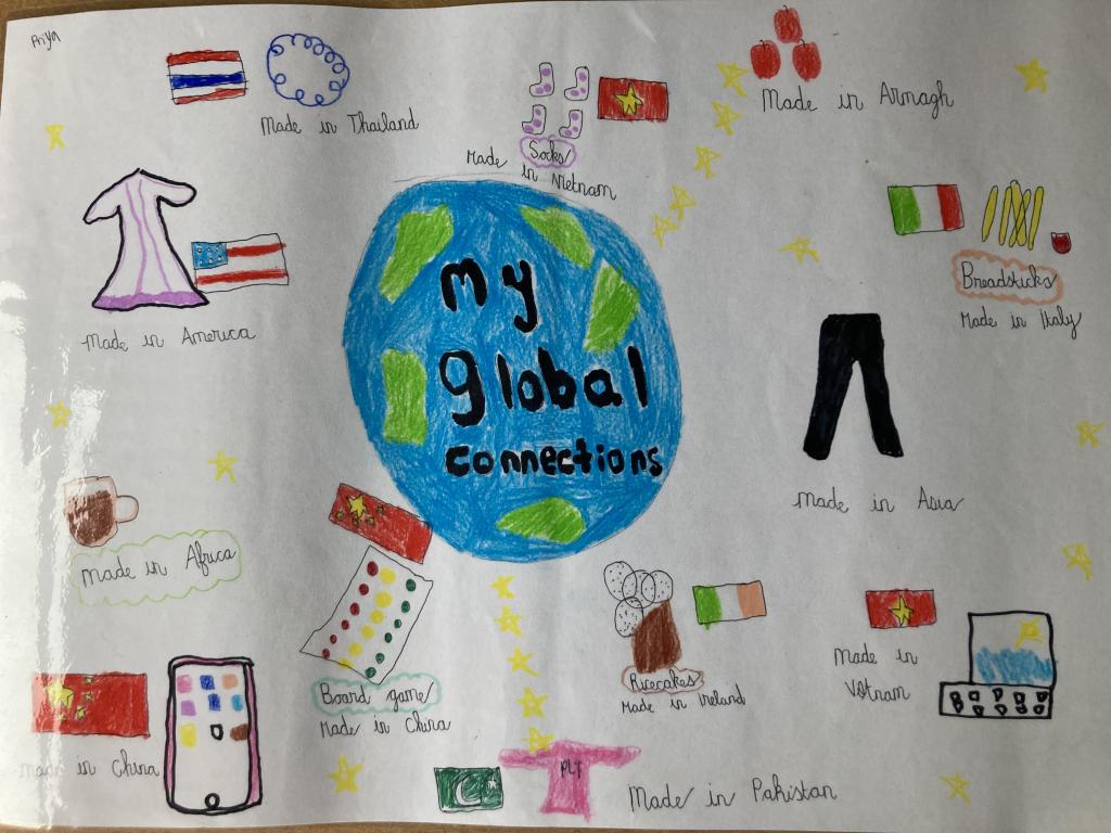 Pupils in 2B designed some wonderful posters to illustrate how connected we are to other countries through the products we consume. Check out a selection of their posters in the gallery below.