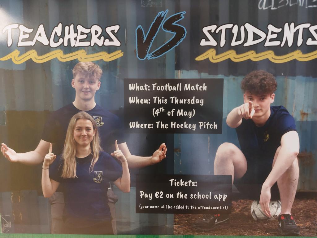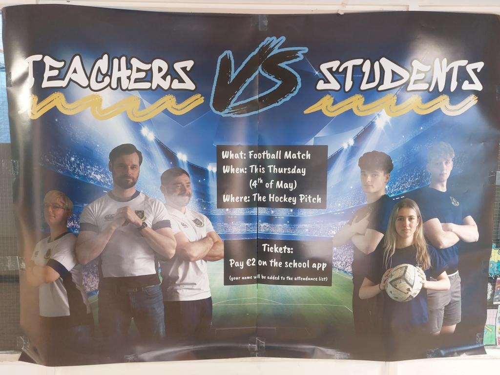 The Teachers will be playing a football match against the 6th Years as a fundraiser for the 6th Year Graduation this Thursday the 4th May!