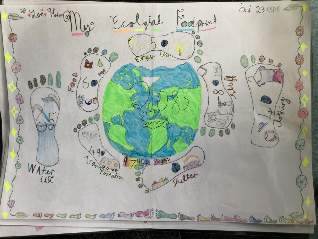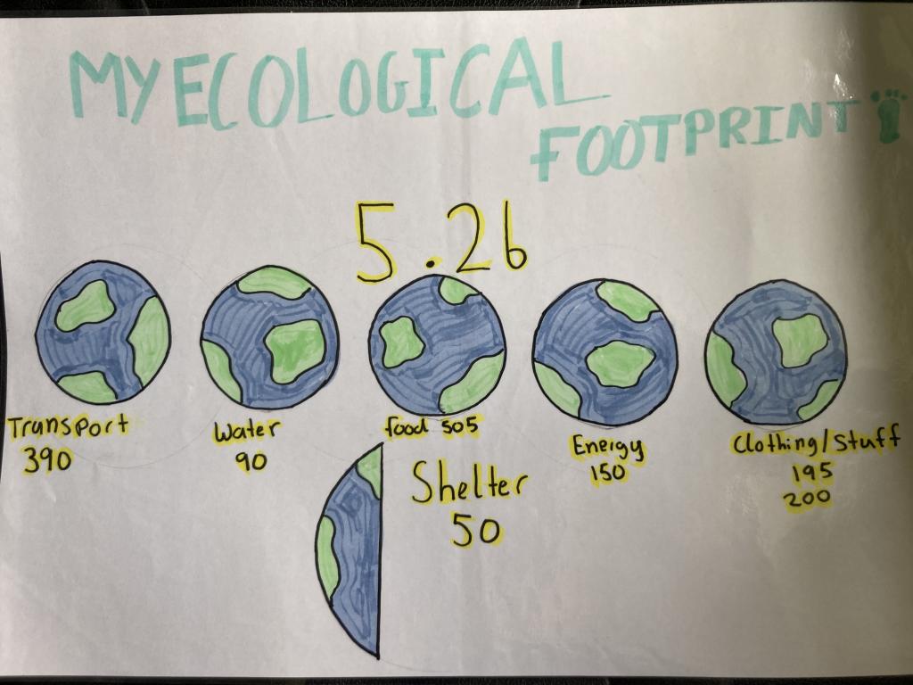 2B pupils calculated their Personalical Ecological for a range of categories (water use, energy, transport etc..), then calculated their total Ecological footprint and how many earths it would take if everyone on the planet lived like them. Finally some calculated how many acres/hectares of land is needed for their consumption. Check out some of their posters in the Gallery.